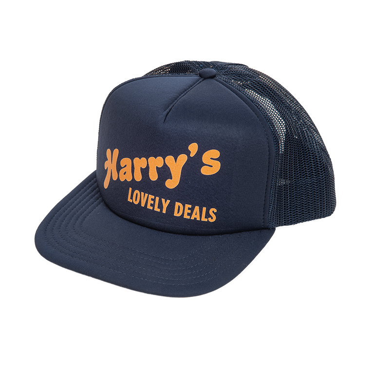 5 panel hat with foam, mesh panels and printed graphic at front.